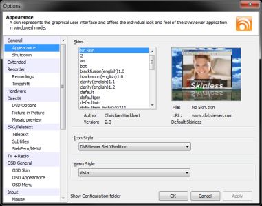 The options dialog offers you all available settings to control the DVBViewer. From changing the language over switching the teletext colour, up to defining short keys. Everything could be done here, and of course XP Theming is also completely supported.