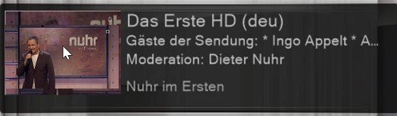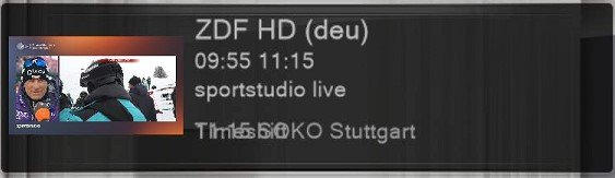 Ich nutze als Basis den OSD Skin "Mediastream". Hier werden verschiedene sich überlagernde Variablen genutzt die je nachdem ob Live Bild oder Wiedergabe unterschiedlich angezeigt werden (siehe Anlagen). Den Tweak "Mini-EPG im Timeshift-Modus anzeigen" finde ich nicht praktikabel, weil vor- und zurückspringen dann nicht funktioniert. Das Problem ist, das im beim LiveBild auch die nur für die Wiedergabe genutzte Variable #Media.title mit "Timeshift" beschrieben wird, obwohl Timeshift nicht eingeschaltet ist. Bisher - ich weiß nicht bis zu welcher Version - war diese dann leer. Bild für Wiedergabe "Nuhr im Ersten" Bild für LiveTV "SOKO Stuttgart" überlagert von "Timeshift"