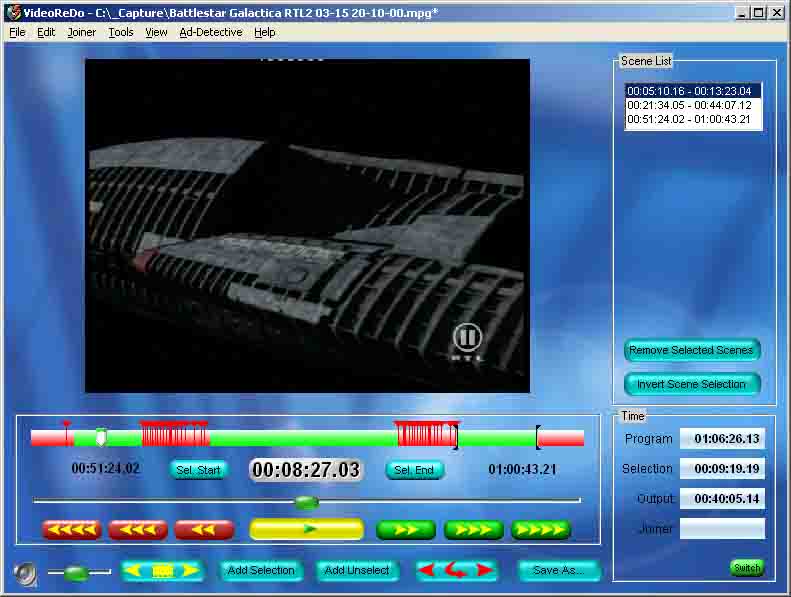 Die A-Detective Funktion ist ganz hilfreich. Sie trifft zum Teil ganz genau und ansonsten sieht man gut wo die Werbeblöcke sind. Das Schneiden scheint auch genauer zu sein als bei SchnittMpeg oder Cuttermaran.