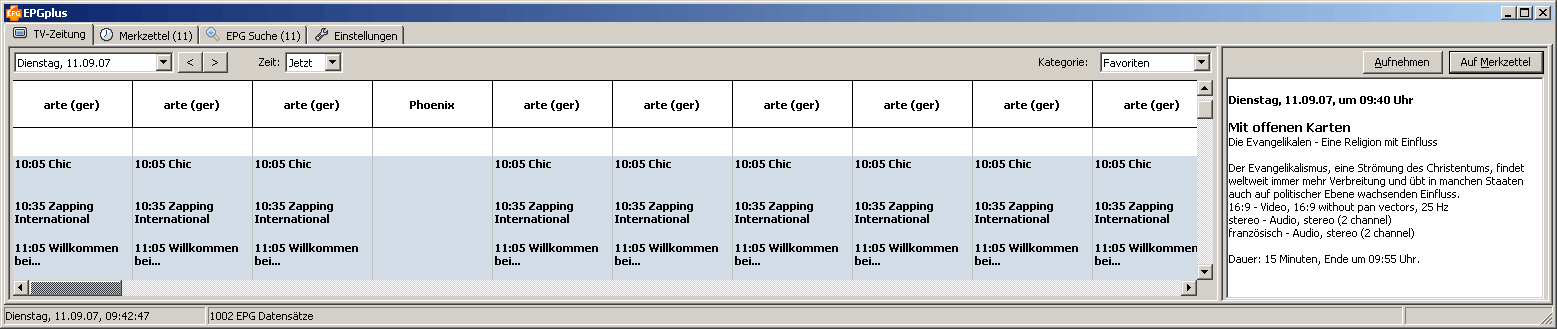 Rayman Posted September 11, 2007 Author Posted September 11, 2007 Wie ihr seht taucht Arte viele mal auf. Dazwischen tauchen ab und zu auch andere Sender auf (Phoenix, Das Erste, WDR), alle anderen Sender werden überhaupt nicht angezeigt Hmm, hier funktioniert alles bestens, von anderen Nutzern habe ich noch nichts gehört. EPGplus nutzt die Senderlisten/Favoriten 1:1 aus dem DVBViewer. Ist deine Kanalliste und die Favoriten im DVBViewer in Ordnung? Konfig: DVBViewer 3.6.1.20 Ggf. DVBViewer mal auf die Version 3.8 updaten :-) Gruß, Stefan. Quote