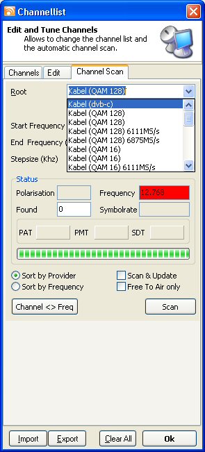izibizi Posted April 3, 2006 Posted April 3, 2006 (edited) I have just installed the full version v3.2.6.80 I am trying to do a full scan (first time) of hotbird. however, in the root i see only Kabel lines. No sattelites there. when i try to scan after setting the correct values for the LNB and scan range it finish the sccan in 1 second and make a little sound but no chaanel has beeb found. i must be doing something wrong. I am using Skystar 2 on winxp pro. Setup.xml Edited April 3, 2006 by izibizi Quote