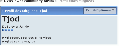 hdv Posted August 19, 2006 Posted August 19, 2006 Hallo Tjod, wäre es möglich das die Suchfunktion welche Posts ein Mitglied geschrieben wieder in das Profil des Mitglieds eingebunden wirddas ist immer noch möglich, ist jetzt unter "Profil-Optionen" rechts oben verlagert. Es gibt natürlich auch Foren die fast nur zum Zeitvertreib für Trolle dienen z.B. das ... Forum.Aber ich hoffe das dieses Forum nie so wird. obwohl manchmal habe ich den Eindruck, das in manchen Topic auch sehr weit ausgeholt wird, und absolut nichts mehr mit dem Thema zu tun haben, bzw. überhaupt keine wirkliche Aussage enthalten. Quote