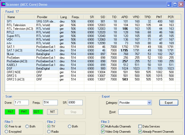 wbeinh Posted September 12, 2006 Author Posted September 12, 2006 Vielen Dank für die rasche Antwort. Nachdem ich mich nun heftig mit TransEdit auseinander gesetzt habe, bin ich auf folgendes gekommen: 1) Die einfrierenden Sender auf 506Mhz frieren in der TransEdit Preview NICHT ein. Wenn ich sie dann über TransEdit im DVBViewer update (re Maus: Update in DVBViewer) frieren sie in DVBViewer wie üblich ein. 2) Bei den Sendern auf 514Mhz, bei denen keine EPG-Daten angezeigt werden, scheint als TID 7000 auf und ist immer weiß hinterlegt. Das heißt, alles ist hellblau oder grau (also ident mit der Kanalliste im DVBViewer) nur die gesamte Spalte TID ist weiß. Falls das nicht so richtig verständlich ist --> Anhang (alle Problemsender auf 506 und 514 Mhz aus Punkt 1 und 2). *Mein Kabelprovider: In Österreich --> LIWEST (alle Transponder werden QAM64 moduliert; hier wird übrigens alles im Bereich von 500Mhz bis 700 Mhz aufmoduliert). *Video Codec: Ich verwende Pure Video mit Hardwarebeschleunigung und VMR9 als Renderer weil ich dabei in bewegten Szenen (Ticker, Laufbänder, Ausschuss beim Fussball etc.) viel bessere Ergebnisse erziele. Aber die genannten Probleme stellen sich mit allen Codecs ein, die ich bisher versucht habe. (Im TransEdit Preview läuft RTL (ein Sender auf 506Mhz) nun seit mehr als einer Stunde mit Nvidia Pure Video...) *Audio Codec: Welche Version von AC3Filter empfiehlst Du? Die aktuellste oder 0.7b? Kriegen wir die Probleme in den Griff?? Viele Grüße Werner Quote
