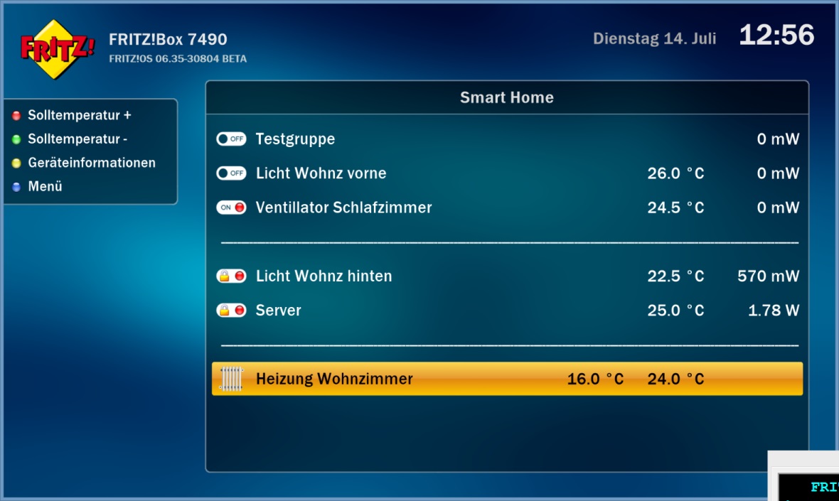 SnoopyDog Posted July 14, 2015 Author Posted July 14, 2015 Hallo koekjuli, das geht bereits in den Einstellungen des Plugins unter "Anrufmonitor" => Nebenstellen => "Nur hier eingetragene Nebenstellen signalisieren" Ansonsten habe ich den SmartHome-Bereich ein wenig verbessert: Es werden jetzt auch Heizkörperregler unterstützt. Batteriestatusanzeige ist zwar vorbereitet, wird aber von AVM derzeit nicht per API übermittelt. Schaltergruppen werden erkannt und unterstützt. Siehe angehängtes Bildschirmfoto... Ist allerdings noch nicht ganz abgeschlossen. Quote