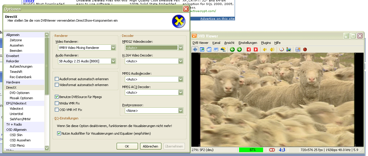 Xevous Posted January 13, 2007 Posted January 13, 2007 (edited) Weiss nicht genau was das ist. Habe das Problem das, dass Video Async läuft nach längerer Zeit. Man hört den Ton normal wie immer, nur das Video ist verlangsam so als würde es mit 5-10Fps laufen. Das selbe Problem hatte ich immer mit der Pinnacle TV Software der PCTV 400e. Habe dies seit ich die v3.6.0.2 drauf habe. Möglicherweise durch die DX9 Renderung? Edited January 13, 2007 by Xevous Quote