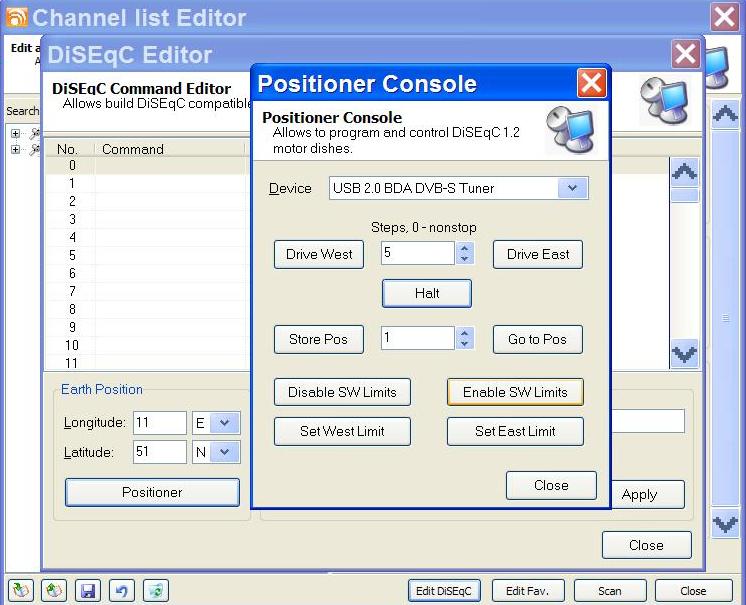 Elv1s Posted November 15, 2007 Posted November 15, 2007 Hello DVBViewer-fans, I tested new version of DVBViewer (3.8) and I find it very well done. But one feature, I still miss in the DVBViewer: steering the antenne with a Diseqc 1.2-compatible motor. I use BDA-driver from Technotrend with USB-conncted Hardware (S-2400). I found the dialog for driving the antenne, but non of the buttons make the motor move. See the attached picture. Has somebody tried to move an antenne with motor using BDA-driver from Technotrend? Thank's in advance Chris Hey Chris! I'Ve got TT-Connect S-2400 too. But as far as I know, it does not support Diseqc 1.2 only 1.0. Sadly I only got a Diseqc 1.2 Motor thus I have not been able to move the Motor with S-2400. Please correct me if I'm wrong. Quote