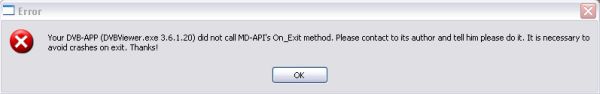 Poi Posted May 26, 2007 Author Posted May 26, 2007 Diese Meldung wird nicht vom DVBViewer erzeugt. Aber die erscheint sofort nach dem Schliessen von DVBViewer... Quote