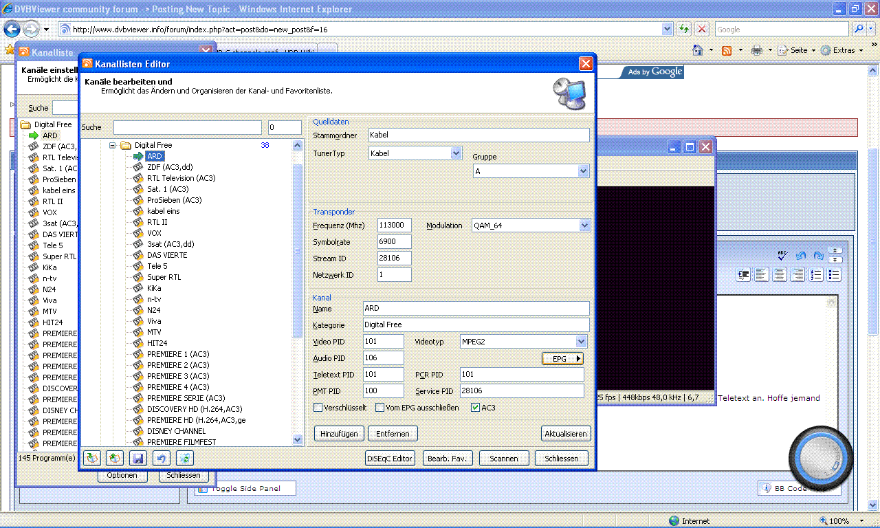 Stream Posted May 28, 2007 Author Posted May 28, 2007 vielen Dank für den Tip mit Transedit - leider finde ich nach wie vor die ARD Kanäle nicht... Hat noch jemand eine Idee? Quote