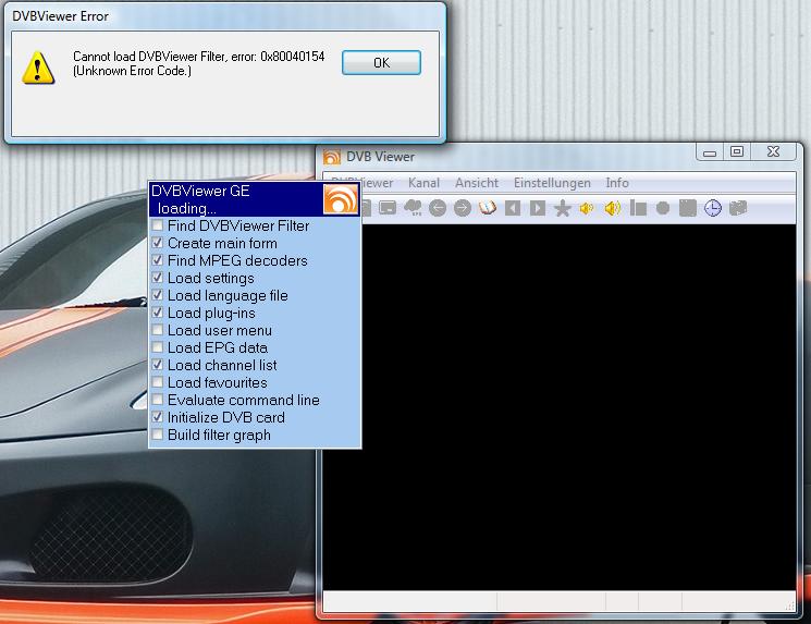 Sk0rp Posted June 20, 2007 Posted June 20, 2007 Hallo Ich habe mir jetzt mal den DVBViewer GE installiert, da der ja weniger Funktionen hat als die "Vollversion". Habe mir gedacht, dass es bei weniger Funktionen auch weniger Probleme geben sollte Erstmal meine Ausstattung: Vista Business 32bit, Core2Duo, 3GB Ram, ATi Graka, Sound onboard Technisat Airstar DVB-T PCI / Rev.: 1.0 A / P/N:92400-20200A / Auf dem Chip steht: b2c2 flexcop IIB MKLQL-000 0515 (falls sowas relevant ist ) Die Karte wird im Gerätemanager unter Netzwerkadaptern als "TechniSat DVB-PC TV Star PCI" angezeigt. Nun zu meinem Problem wenn ich den DVBViewer GE starte bekomme ich die Meldung "Cannot load DVBViewer Filter, error 0x80040154 (Unknown Error Code)." (Siehe Screenshot) Ab und zu kommt es vor, dass wenn der DVBViewer zu lange geöffnet ist, dass der Rechner einfriert// hängenbleibt und nur durch einen reset wieder zu erwecken ist. Hat einer eine Idee wie ich das Ding ans laufen bekomme? Gruss Michael support.zip Quote