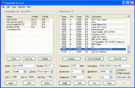 Griga Posted July 13, 2007 Posted July 13, 2007 Dieses Bild gibt doch eigentlich das wieder, wie ich es grundsätzlich einzustellen habe...., oder? Ja. Nimm doch einfach TransEdit und die mitgelieferten Transponderlisten für das Scannen. Zu beachten ist, dass die verwendeten Transponderlisten sich beim DVBViewer Pro Beta und DVBViewer GE eventuell im Konfigurationsordner\Transponders befinden (siehe Hilfe/Info -> Konfigurationsordner, bei TransEdit Info -> Configuration Folder, ob der Ordner Transponders dort existiert). Neue Transponderlisten müssen dorthin kopiert werden, damit sie zur Auswahl stehen. Quote