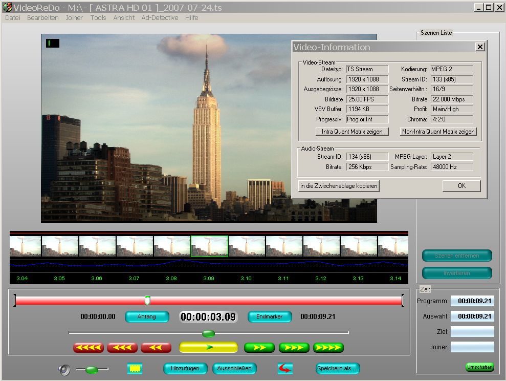 Derrick Posted July 24, 2007 Posted July 24, 2007 Da muss ich Moses recht geben. ReDo kann übrigens u.u. sogar weniger als ein freeware tool. Hier ein HDTV_4:2:2_stream. Für den cuttermaran muss man zwar erst demuxen aber das macht pj.x sehr zuverlässig. Ausserdem extrahiert pj.x alle möglichen untertitel, die ich dann mit in eine dvd authore Quote