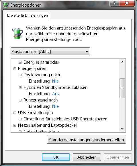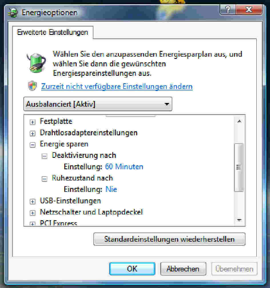 Hartwig Posted July 28, 2007 Posted July 28, 2007 in der Taskbar ist aber das Icon vorhanden.Wo kommt das denn jetzt her? ich dachte, du machst das jetzt nach der oben empfohlenen Methode. Dann dürfte das garnicht da sein. Allerdings fiel mir auf, dass im Taskplaner der Sheduler nicht explizit aufgeführt istversteh ich nicht ganz. Wo soll das genau sein?Es muß nur die Aufgabenplanung laufen. Der Scheduler wird dann nur beim Beenden des DVBviewers gestartet, legt die Tasks an und beendet sich wieder. Probleme habe ich auch die Kontrolle der Energie-Optionen unter Vista durchzuführen - wie geht das/wo finde ich das?Drücke die Windowstaste und tippe "Energieoptionen" ein. Ansonsten in der Systemsteuerung mal auf die klassische Ansicht wechseln. Dort findest du dann die Energieoptionen. Dort auf "Energiesparplaneinstellungen ändern" klicken. Dort dann auf "erweiterte Energieeinstellungen ändern". Der Ruhemodus müßte dann verfügbar sein. Was allerdings sein könnte, daß er noch durch den hybriden Standby abgelöst wird. Dabei fährt der Rechner in den Standbymodus und schreibt gleichzeitig wie beim Ruhemodus ein Speicherabbild auf die Festplatte. Aber dieser Modus funktioniert genau so wie der Standby oder Ruhemodus mit dem DVBViewer und Scheduler, auch wenn er nicht extra zur Auswahl steht. Die Auswahl übernimmt Windows. Quote