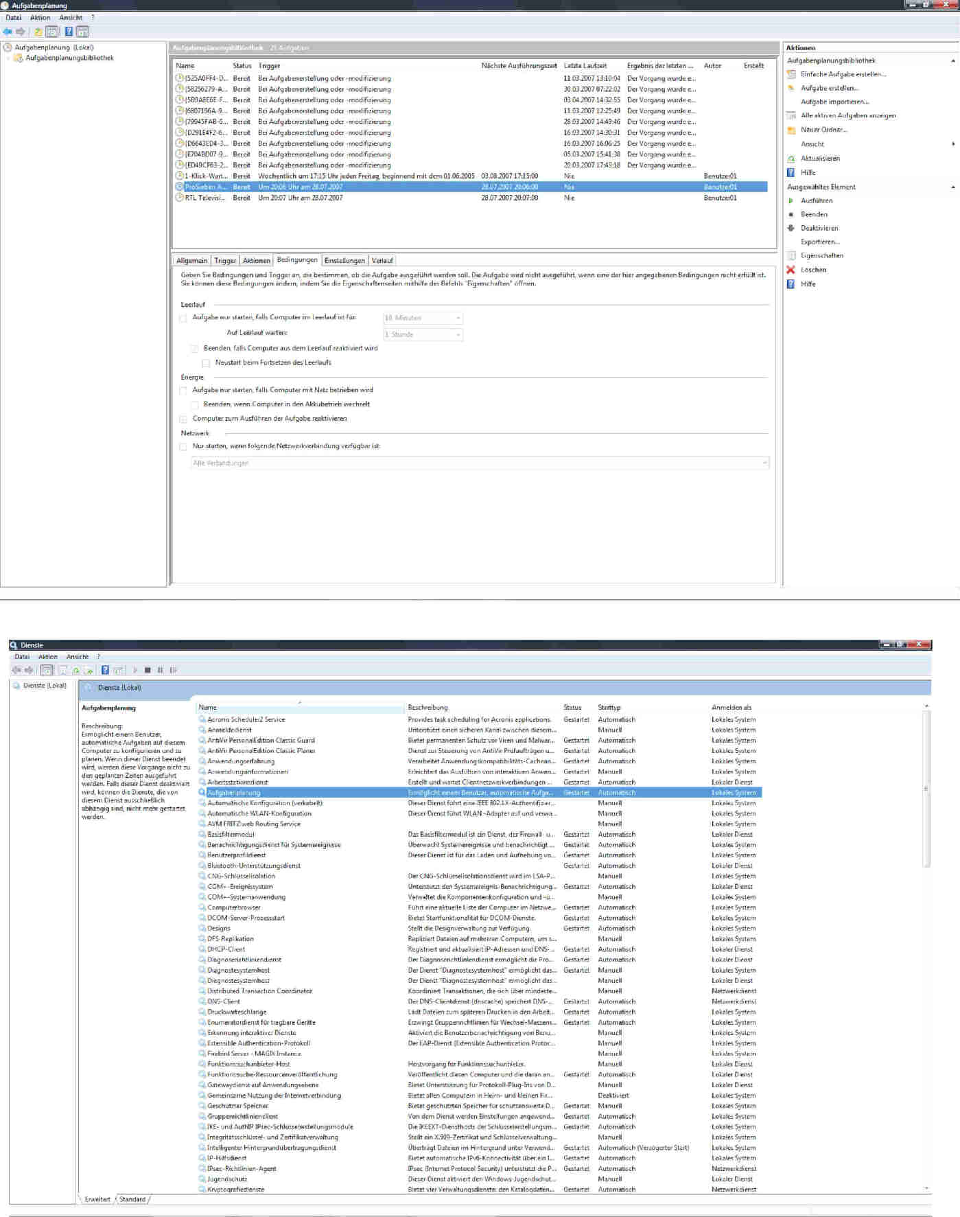 Hartwig Posted July 26, 2007 Posted July 26, 2007 und wenn du es unter Vista direkt im Taskplaner sehen willst, drücke die Windows Taste und fängst an, "Aufgabenplanung" einzutippen. Nach 4 Buchstaben solltest du auf dem richtigen Startmenüeintrag stehen. In der Aufgabenplanung klickst du dann links auf "Aufgabenplanungsbibliothek". Dort sollten dann in der Mitte die Tasks erscheinen. Quote