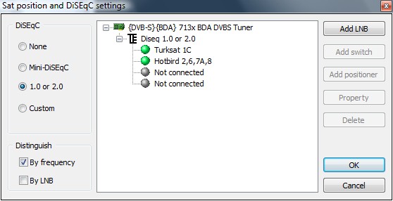 Ataberk Posted August 14, 2007 Posted August 14, 2007 I've purchased DVBViewer today, browsed newbie forum but couldn't find a similar problem with mine. My DVB-S card is FlyDVB-Trio, I use only DVB-S function. I have two dishes (one for TurkSAT and one for Hotbird). I have one 4-port Diseq switch. TurkSAT is connected to first and Hotbird is connected to second ports. I have Windows Vista Installed, i have no problem switching between sattelites with other freeware programs like progdvb. The problem is; I can watch the TurkSAT channels smoothly but can't switch to any hobird channels. (Or vice versa). The only solution i found, 1- Close DVBViewer and open Progdvb 2- Switch to any hotbird channel. 3- Close ProgDVB 4- Restart DVBViewer. DVBViewer now can show hotbird channels. (and have ability to scan) But this time can't switch to TurkSAT channels. To have ability to watch TurkSAT channels again, I have to do steps written above again. (and switch to any TurkSAT channel in Progdvb) This time can't watch Hotbirds again Somehow, DVBViewer can't switch between sattelites with my DVB-S card. (BDA device itself). It's so boring. Any suggesttions? support.zip Quote