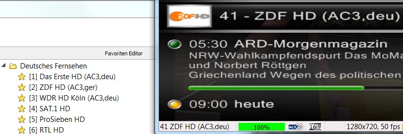 Innuendo Posted May 11, 2012 Posted May 11, 2012 Danke Tjod für die Info. Das klingt auch logisch, aber dann habe ich meinen DVBV so verändert, dass es nicht mehr logisch ist. Siehe Bildanhang Ich kann auf ZDF mit 2 umschalten (UseFav), angezeigt wird die Senderlistennummer (41) Aktuell verwende ich den X-Skin Black Glass - der Bildanhang zeigt den unveränderten Standard OSD Skin. Gibt es weitere Stellen für eine Veränderung #channelnr außer myminiepg.xml? Innu Quote