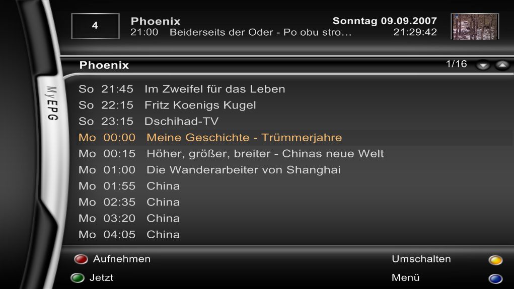 Moses Posted September 9, 2007 Posted September 9, 2007 1.) mit falschen Decodern bekommt man das beim DVBViewer auch so hin... mit der richtigen Konfiguration funktioniert es aber stabil 2.) Es gibt ein Plugin für die X10 Fernbedienungen, könnte also funktionieren. 3.) OSD ist super lesbar vom Sofa aus. Wobei ich dringend empfehle sich die verschiedenen OSD Skins anzugucken. Quote