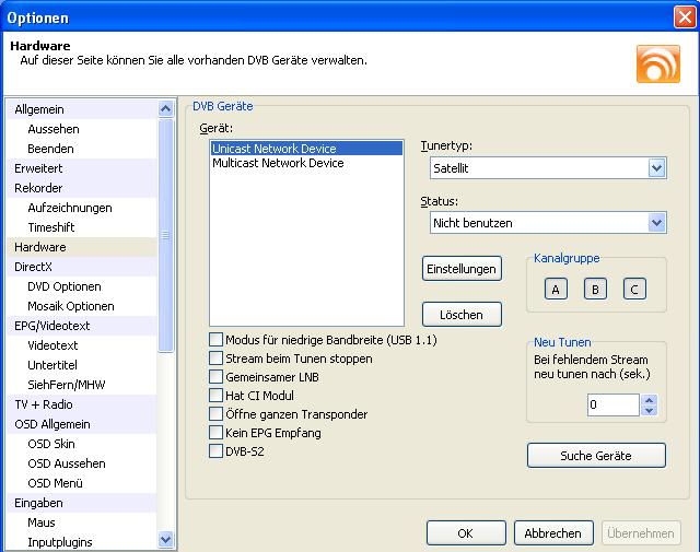 Derrick Posted October 4, 2007 Posted October 4, 2007 Unicast network DeviceMulticast Network Device Auswählen da habe ich Unicast auf Bevorzugt gestellt. Wie kommst du zu der annahme, dass du da was stellen musst? Du willst doch mit deiner karte was empfangen und nicht von einer anderen quelle über ein netzwerk? ..übrigens steht die prozedur für Korrektes Posten Eines Problems/Fehlers, * Bitte beachten, sonst keine Antwort *. zum anklicken oben drüber. Quote