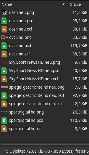 buster19 Posted September 2, 2019 Posted September 2, 2019 vor 17 Stunden schrieb Lila-Kuh: Hab mich mal wieder an Senderlogos versucht Hoffe es schmeckt! Daten liegen als - .png - .psd - .xcf - vor logos_09_2019.zip (Admins & Supps, ist es möglich die defaultMaxGröße der Anhänge hier im Board von 0.12MB anzuheben?) Klasse, genau das was noch gefehlt hat - vielen Dank! Quote