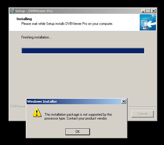 Robotnz1000 Posted October 12, 2007 Posted October 12, 2007 Hi Guy's I just paid and DL the pro, then tick all options and DL all - then on loading I get install error as attached - 'cpu is not supported'. Then after close that window get successful instal windows attached. CPU is old AMD Skt 462 running at 1833mhz on Asus Asus A7V333-X motherboard with 384megs of ram. I previously loaded the new Cyberlink PowerCinema SW, but with dish already on a known good alignment to D1 (60% strength and quality as tested via a skystar 1 CI + spectrum analyser) the power cinema sat search could find nothing. My dish is a 900mm offset on motor but as its presently aligned on D1 I am just doing a simple scan. LNB is MTI Low Noise 10750 L.O. KU Band LNB[LNB107KUHQ] So I searched to a HVR4000 review (below) and learned of DVBViewer and here I am! Please see my attchments and advise. cheers Ken :-) http://www.tech.co.uk/computing/upgrades-a...e-wintv-hvr4000 Quote