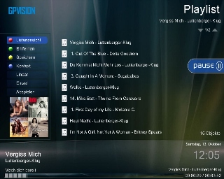 wigglegeri Posted October 13, 2007 Posted October 13, 2007 (edited) In den derzeitigen Zeiten des "Skin-Booms" habe auch ich meine "Vision" eines OSD-Skins erstellt und meine Initialien vorangestellt (soviel einmal zum Namen). Es handelt sich hier ebenfalls um die Abwandlung eines bereits bestehenden Skins, den ich mir eben angepasst habe. Das Hauptaugenmerk lag dabei natürlich auf optische Ansprechbarkeit und gute Lesbarkeit, allerdings auch (da ich ein großer Musikfan bin) um eine Neugestaltung der Playlist. Da das Ergebnis meiner Meinung nach sehr gelungen ist, stelle ich hier eben mal ein paar Screenshots rein und möchte fragen, ob jemand Interesse an diesem Skin hat und ob ich ich hochladen soll, kann und darf (wenn mir jemand sagt, wie man eine ca. 2 MB große ZIP-Datei hochlädt... ) Erwarte eure Meinungen! lg aus Österreich wigglegeri edit: Danke für das bereits jetzt große Interesse und die Speicherplatzerweiterung! Also, dann hier ist der Skin. In 4 Versionen: GPVISION.zip (4:3, mit großen Schriftarten) GPVISION2.zip (4:3, mit kleineren Schriftarten) GPVISION_169.zip (in 16:9) GPVISION_1610.zip (NEU: in 16:10!) Wetterupdates für 16:9 - Skin: myweather.xml; für 4:3-Skin: myweather.xml; einfach die neue Datei in den erforderlichen Ordner kopieren und dabei die alte Datei ersetzen! Edited May 18, 2008 by wigglegeri Quote