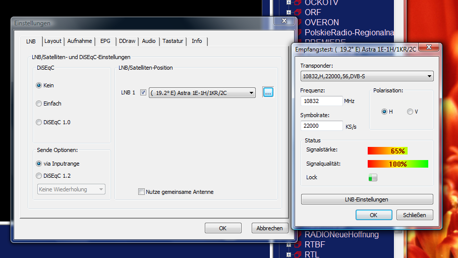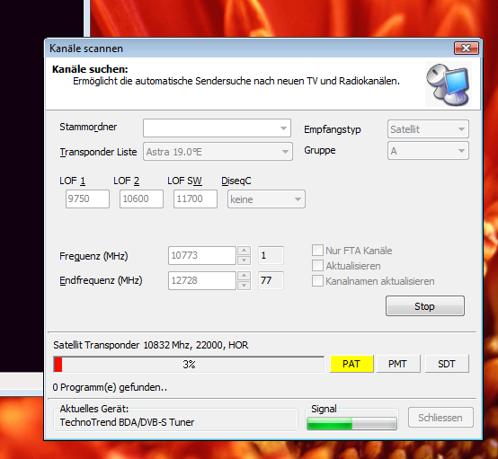 michael.przybyla Posted October 16, 2007 Author Posted October 16, 2007 (edited) Ok, habe das ganze jetzt runtergeworfen und nur noch die Treiber und das MC von der Technotrend-Seite installiert. Bekomme jetzt keine Fehler mehr, ein Signal habe ich nun auch. Doch Programme kann ich trotzdem nicht sehen, nicht im MC und auch nicht im DVBViewer. Kann ich im DVBViewer schauen ob ich ein Signal habe, oder sowas in der Richtung vom einem Testsignal? DVBViewer sagt mir immer: keine Daten vorhanden, wenn ich versuche ein Programm von der mitinstallierten Channel-Liste zu öffnen. Edited October 16, 2007 by michael.przybyla Quote