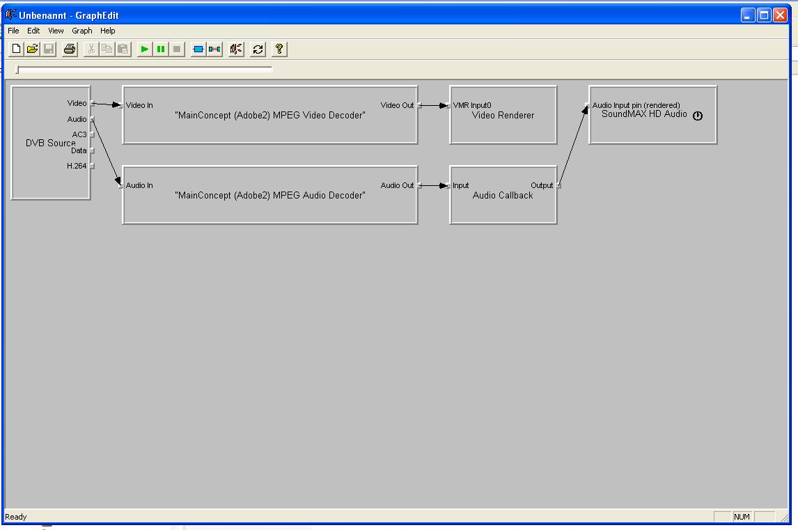 der_Wolf Posted October 30, 2007 Author Posted October 30, 2007 (edited) Vielen Dank für eure schnellen Antworten. Folgendes hat sich geändert: Die Decoder hatte ich beim experimentieren ausgestellt. Nun habe ich sie wieder eingestellt (optionen=>DirectX). TV geht jetzt auch wieder, allerdings nur auf "Video Render: unchanged". So war es vor meiner Wurstelei auch. NEU: Nun bekomme ich bei HDTV-Sendern die Fehlermeldung: "KannVideo/Ausgabe Pin nicht rendern, error:0x80040218... urden keine Filter zum Rendern der Eingangsdaten gefund..." Muss ich nun nen Graph für HDTV machen? EDIT Ich bekomme im GraphEdit den Mainconcept H.264 einfach nicht ans fliegen. DVBsource zu Mainconcept H.264 Decoder geht, aber dann komme ich nicht weiter bis zur Ausgabe. Der Nachbau des mpg2-Wegs und einfachem ersetzen der Decoder geht leider nicht! Habe die Graphen jetz mal angehängt. Edited October 30, 2007 by der_Wolf Quote