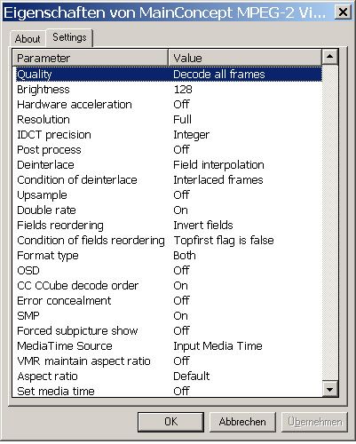 hdv Posted October 30, 2007 Posted October 30, 2007 Hallo, die aktuelle Version findest du immer im Mitglieder-Bereich -> http://www.DVBViewer.com/members/ Dort hast du hoffentlich auch den 3.8 her. Der MainConcept MPEG2 Decoder ist sehr gut, meiner Meinung nach, seit etwa zwei Wochen setze ich diesen ein und konnte noch nichts negatives im Zusammenhang mit dem Decoder feststellen. Zur Zeit wird die Version mit dem FireDTV S2 ausgeliefert. Was dabei besonders gut ist, das man die doppelte Bildrate einschalten kann und das sich das Deinterlace auf interlaced oder progressives Material beschränken läst. Im Gegensatz zum H.264 MainConcept Decoder bietet die MPEG2 Variante auch die Möglichkeit DXVA zu nutzen. Quote
