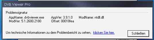 Brandy Posted December 3, 2007 Posted December 3, 2007 Nachdem seit langer Zeit mein DVBViewer ohne Probleme seinen Dienst verrichtet habe ich nun auch mal ein Problem. Ich habe eben auf die Version 3.9.1.0 geupdatet, sprich ich habe die Version 3.9.0.0. deinstalliert und die neue Version inkl. aktueller Programmlisten neu installiert. Alles läuft super und stabil. Wenn ich jedoch den DVBViewer beenden möchte, kommt folgende Fehlermeldung (siehe Screenshot) Hat jemand eine Ahnung woran das liegen könnte? Als Betriebssystem benutze ich die aktuellste Version von Windows XP SP2. Falls weitere Informationen benötigt werden bitte melden. Gruß Daniel support.zip Quote