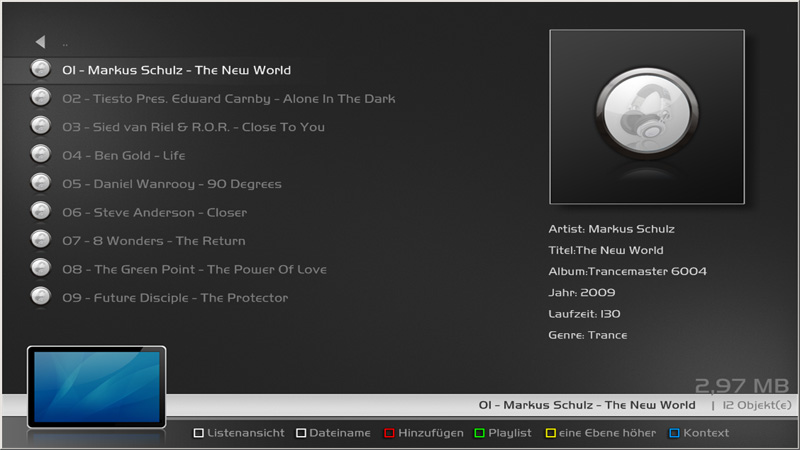 xice Posted December 10, 2007 Author Posted December 10, 2007 Der Skin ist wirklich gut - was eventuell geändert werden sollte ist die Größe der List- und Thumbnailviews in MyMusic, MyVideo etc. Die großen Icons könnten ein bisschen vergrößert und die beiden Knöpfe für Auf/Ab weiter nach unten verlagert werden. Auch das Ebene zurück Bild ist ein bisschen zu dunkel - in einem dezenten Weiß ist es ggf. leserlicher. Auch würde ich das icon_empty_nofocus ein klein bisschen heller gestalten. Christian PS: Ansonsten nicht übel Da lässt sich sicher was machen. Das icon_empty_nofocus habe ich eigentlich extra dunkel gestaltet, damit die Spiegelung besser zur Geltung kommt. Es heller zu machen zerstört irgendwie die Optik des Skins ... aber das ist ja geschmackssache. Mit dem nächsten Update versuch ich es, wie du es schon sagst , es dezent zu ändern. Quote