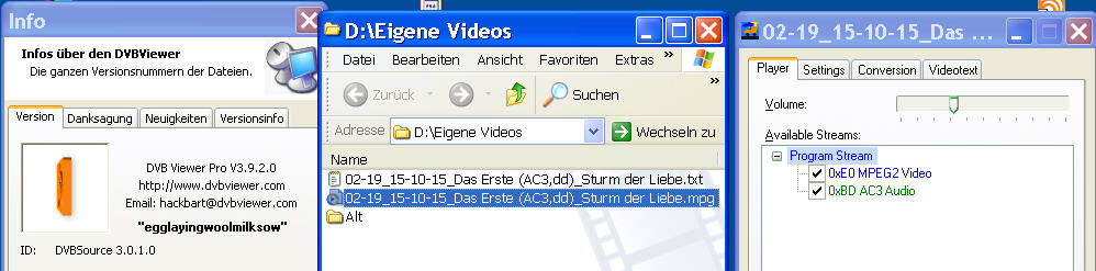hdv Posted January 27, 2008 Posted January 27, 2008 Hallo, Beim TS-Format besteht das Problem nicht.ist das bei dir auch der Fall?Das Problem bestand/besteht nur mit dem Aufnahmeformat MPG. Bei welchem Sender ist es den bei dir nicht möglich AC3 aufzunehmen? Quote