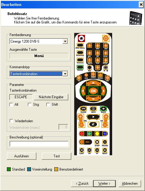 Alle anderen Tasten habe ich als Kommandotyp : Tastenkombination definiert.