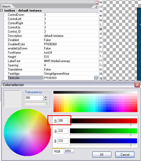 SnoopyDog Posted March 31, 2010 Posted March 31, 2010 Hi Lars! Danke für die ganzen Updates. Beim neuen Skineditor ist mir noch eine Sache aufgefallen: Wenn ich irgendeinen RGB-Wert mit dem Colorselector bearbeiten will, wird der erste Wert ® fälschlicherweise immer als 255 dargestellt (siehe Bild). Und es gibt noch Stellen, wo sich Breite und/oder Höhe eines Elements ändern, wenn man deren X/Y-Position ändert. Spontan fällt mir da das UpDown eines Thumbnailpanels ein. Ist aber beides nicht ganz so schlimm, man kann damit leben... Quote
