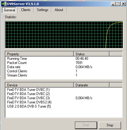 Moses Posted January 17, 2008 Posted January 17, 2008 Naja... die wichtigen Informationen stehen ja auch in der Transponderliste, die man beim Channelscan nutzt. Kannst du natürlich auch mal versuchen... am Server steht ob nen Client verbunden ist, oder nicht... wenn es funktioniert, sollte der DVBServer ca so aussehen: Wichtig ist, dass mindestens ein Control Client und ein Stream Client verbunden sind (auf der Seite Clienst kann man auch die IP des Clients überprüfen) und wirklich Daten übertragen werden. Bei mir braucht der DVBServer immer relativ lange um anzufangen, also das DVB Gerät zu initialisieren usw... wenn da alles stimmt, sollte der Client was anzeigen. Das kann dann eigentlich nur noch durch falsche Decoder und/oder Verschlüsselung schief laufen. Quote