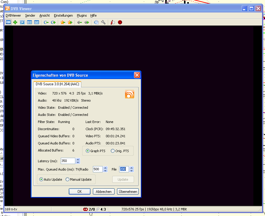 jrq Posted January 24, 2008 Posted January 24, 2008 (edited) Ton ist da?Was wird unter Ansicht > Filter > DVB Source angezeigt? Du könntest mal einen anderen Video Renderer unter Optionen > DirectX versuchen sonst aber ich gerade keine Idee. Andere Renderer habe ich schon probiert. Kein Erfolg. Unter Filter>DVB Source ist das zu sehen: Edited January 24, 2008 by jrq Quote