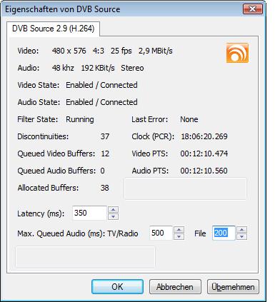 hdv Posted January 30, 2008 Posted January 30, 2008 Hallo, wo könnte man den mit der Fehlersuche beginnen??werden im DVBViewer Filter (DVB Source) Discontiunities hoch gezählt? Wenn nein, dann ist das Knacken nicht durch einen fehlerhaften Strteam sondern durch das decodieren entstanden.Ich hab hier manchmal auch ein Knacken im Ton, auch beim abspielen von Aufnahmen, ein kurzes zurückspulen zeigt dann, das es nicht in der Datei vorhanden, sondern nur beim wiedergeben entstanden ist. Den DVBViewer Filter erreichst du über Ansicht -> Filter -> DVB Source. Quote