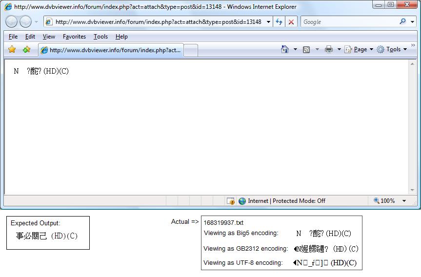 sickno Posted March 16, 2008 Posted March 16, 2008 Christian, As for your information, the first and second line seems to be coming from CCTV, a mainland china broadcaster (gb2312 encoding), and the programme link is: http://www.cctv.com/program/zgzq_new/02/index.shtml The third and forth line is obviously wrong. The fifth and sixth line is coming from Hong Kong's TVB HD Jade Channel, with Big5/unicode encoding, and the programme link is: http://infolink.tvb.com/video/providevideoindex.php I understand you do not read chinese, but i provide the links above because both of the pages have put their programme name in jpg file, so that hopefully you can verify yourself visually BTW which one is the transedit screenshot? Can you give me some hints so that I can verify it for you? Quote
