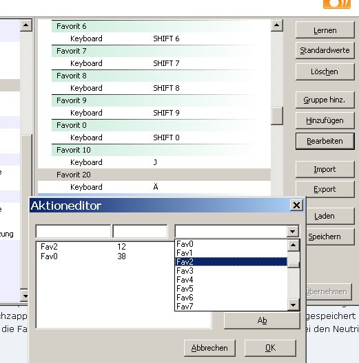 Tjod Posted March 22, 2008 Posted March 22, 2008 Hast du die 5 für Favorit 5 und die 7 für Favorit 7 angelernt? Und gibt es mehr als 57 Favoriten? Dann sollte es klappen, hier funktioniert es. Die pause zwischen den Tastendrücken darf natürlich nicht zu lang sein. Quote