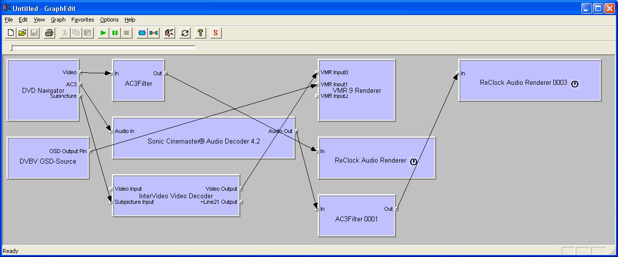 Griga Posted April 1, 2008 Posted April 1, 2008 Only the left ReClock filter was changed to Direct Sound Device The basic problem is that the AC3 filter tends to connect to the video output pin of the DVD navigator, which doesn't make sense. Somehow this is "encouraged" by certain third party filters like ReClock or the InterVideo Audio Postprocessor, even if DVBViewer does not insert them in the filter graph. DirectShow is a kind of gamble... First I'd try to untick "Use for PCM" on the property page (system tab) of the AC3 Filter, in order to prevent it from coming in as audio postprocessor. If this doesn't help, ReClock must be unregistered, otherwise it will continue to come in automatically. Maybe it can be solved in DVBViewer by rendering the DVD Navigator output pins in a different order. After the audio and video decoder have been inserted, the video output pin is the first one, and DirectShow has the choice to connect the video decoder or the AC3 filter to it, because both will agree. Maybe it would be better to render the AC3 output pin first, so the audio decoder is already consumed.... I'll think about it. Quote