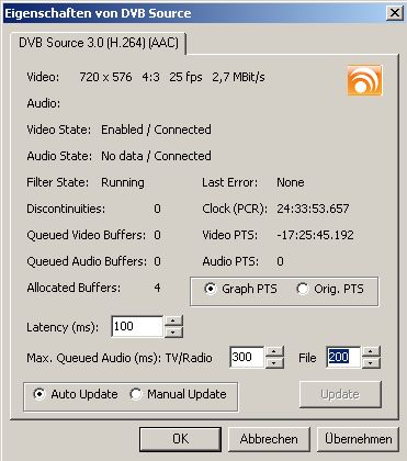 CiNcH Posted April 4, 2008 Author Posted April 4, 2008 Ok, dann ist es nicht verwunderlich, dass die TS-Daten nach Rebuild Graph anliegen. Da ist das CI wahrscheinlich nicht so schnell initialisiert und die Daten laufen noch nicht darüber. Die CI-Reinitialisierung scheint aber ganz schnell von statten zu gehen. Startet man den DVBViewer, sieht man nach wenigen Sekunden immer den kurzen Glitch, wenn das CI initialisiert wurde und die Daten ab dann durch das CAM laufen (4 Discontinuities ca.). Muss ich nochmal schauen wie das Verhalten bei Rebuild Graph ist. Auch im MMI hab ich da keinen Unterbruch feststellen können, das scheint also zustandslos zu sein. Quote