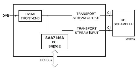 CiNcH Posted April 4, 2008 Author Posted April 4, 2008 (edited) Hier mal ein Blockdiagramm des SAA-Referenzdesigns: IMHO ist der linke Anschluss am SAA der FTA- und der rechte Anschluss der CI-Port. Diese lassen sich über die Funktion 'bdaapiSetVideoport' switchen. D.h. man könnte eventuell FTA dem CI bzw. CAM vorenthalten. TTBDADRVAPI TYPE_RET_VAL bdaapiSetVideoport(HANDLE hOpen, BOOL bCIMode, BOOL* bCIOut) Switch the videoport between CI- and FTA-mode in drivers that support common interface. Parameters: hOpen Is the handle returned by one of the open functions. bCIMode Is the desired CI-mode. TRUE set to CI FALSE set to FTA *bCIOut Is a the mode that the driver has set. TRUE is set to CI FALSE is set to FTA Returns: Value of type TYPE_RET_VAL Der Treiber scheint den Modus bzw. Port zu setzen, kann aber geändert werden!? Edited April 4, 2008 by CiNcH Quote