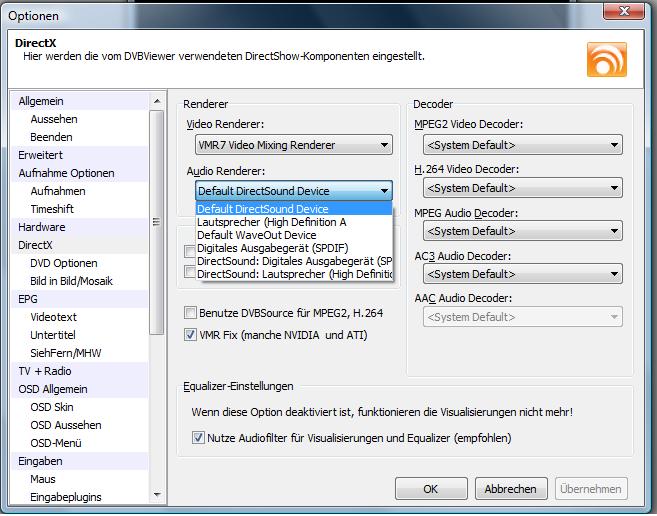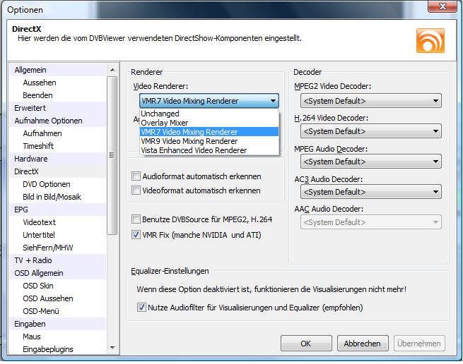 Benarty Posted May 1, 2008 Posted May 1, 2008 (edited) Nichts auf "Default" stehen lassen. Zum testen: Overlay Ich habe gute resultaten mit powerDVD Ultra un der VMR modes sind nich so gut als Overlay. ATI X1600 videokarte. support.zip posten. Edited May 1, 2008 by Benarty Quote