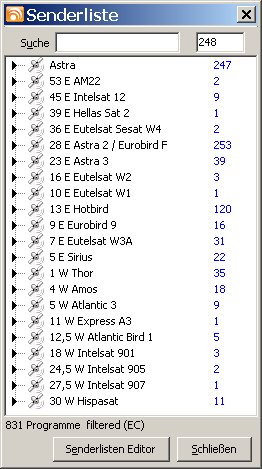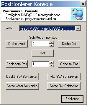 hdv Posted May 18, 2008 Posted May 18, 2008 Hallo, also meiner Meinung nach geht das mit Usals noch besser. Dafür muß dann die Position im DiSEqC Editor eingetragen werden. Um Usals zu nutzen mußt du als DiSEqC "Goto Angular" angeben. Danach kannst du aus der Liste (aufbauend auf die Tranponderdaten) den korrekten Satellite auswählen. Das muß dann etwa so aussehen. Anbei auch eine channels.dat Die einige Satpositionen enthält. Am besten den Filter für das Ausblenden von verschlüsselten Sendern aktivieren, die schwirren in der Liste auch noch umher. Astra 19° und 28° sind mehr oder weniger gut sortiert. 13° nicht wirklich. Die anderen positionen beinhalten nur wenige, im Moment ausreichende Einträge. usals_channels.dat.zip Alle werden mit Goto Angular angefahren. Auf einigen Positionen sind nur Feeds eingetragen, also nicht wundern, wenn da kein Bild kommt, aber zumindest die Schüssel sollte dann auf der korrekten Position stehen. Als DVB-Karte kommt hier auch ein FireDTV-S2 zum Einsatz. Zu beachten ist, das alle Positionen außer Astra (Astra 19°) die Sendergruppe B nutzen. Astra nutzt A. Da bei mir auf diese Position auch andere DVB-Karten zugreifen können/müssen. Das Goto Angular hat den Vorteil, das man sich nicht um die genaue Position kümmern muß, es ist nur wichtig, das der Motor + Schüssel korrekt ausgerichtet sind. Bei "Use Positioner" ist man auf die im Motor gespeicherten bzw. selbst gespicherten Positionen angewiesen und nicht gespeicherte Positionen muß man auch erstmal finden. PS: eine Bitte noch, unterlast das ständige (sinnlose) zitieren von Beiträgen. Das ihr auch auf den vorherigen Beitrag bezieht ist doch klar. Die Zitate hab ich aus den Beiträgen entfernt. -> Wie funktioniert die "Quote" Funktion Quote