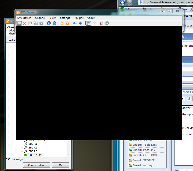 John Hind Posted July 11, 2008 Posted July 11, 2008 DVBViewer Pro V3.9.4.0/Vista Ultimate With the option "Hide Display in Radio Mode" ticked and a radio station selected, the window looks like this: Notice the spurious black "toung" hanging down over the bottom boundary of the window! Also, it would be good if the window width was reduced too - to the minimum width to show all the controls, and maybe the vestigial window area could show the programme information as shown in the info-tip on the channel list. Quote