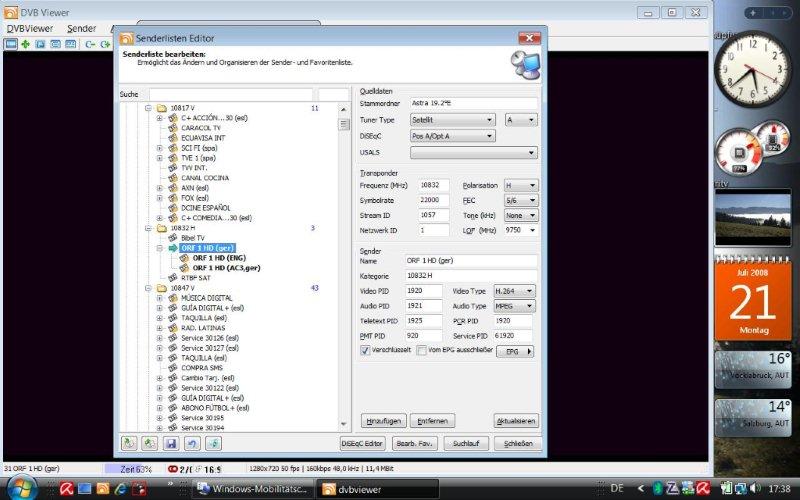 LeimerJ Posted July 21, 2008 Posted July 21, 2008 (edited) Hallo Also ich habe die gleiche TV Karte und finde den ORF HD Kanal problemlos,egal ob die ORF Karte im CAM drinnen steckt oder nicht Du must nur eine neue Transponderliste 192 haben und dann einen Suchlauf machen siehe Anhang 10832 H ist hier die Frequenz für ORF HD 0192.ini Edited July 21, 2008 by LeimerJ Quote