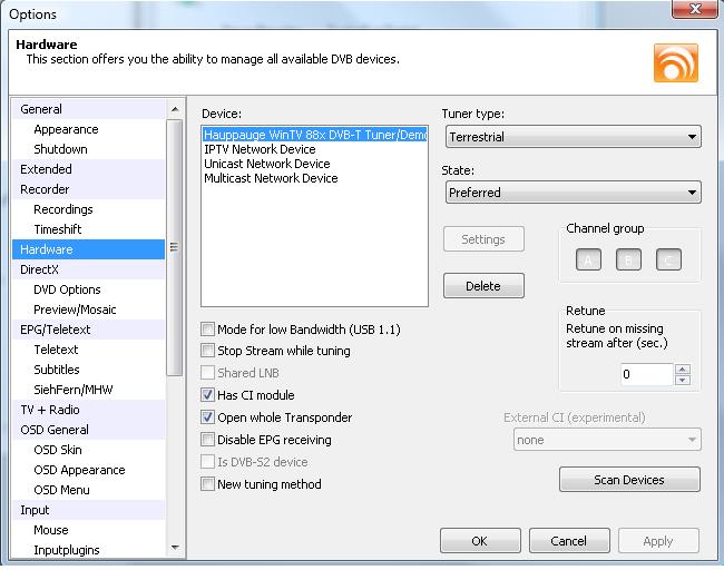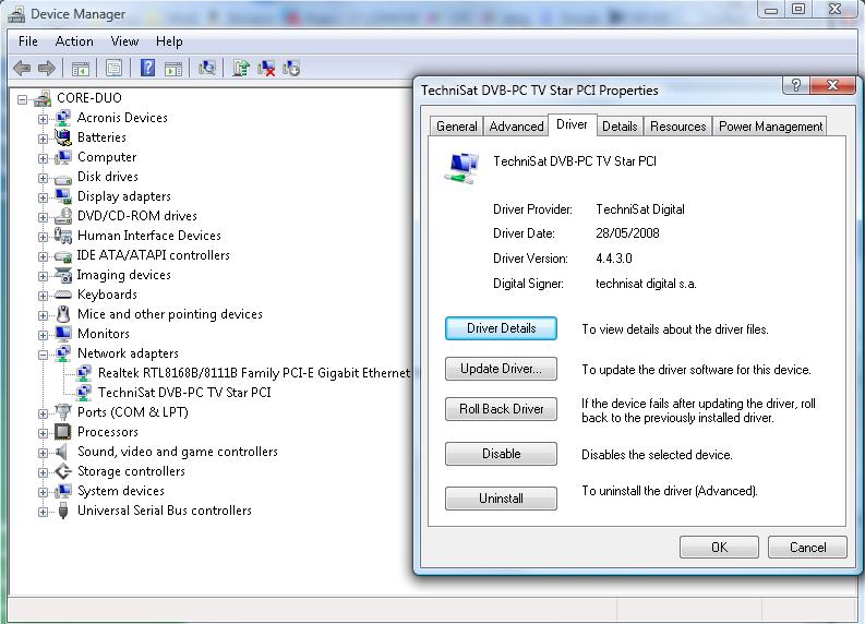 sysman Posted August 27, 2008 Posted August 27, 2008 Hi all. I have been running my TechniSat DVB-PC TV Star PCI on my XP PC (SP3 etc -Core Duo 2.4 - 2Gb Ram - Nvidia 8500GT - 250Gb Sata-300) Ok for a while . I have now dual booted it with Vista and it does not work in Vista. I have the latest drivers installed (4.4.3.0 dated 28-5-2008) and the PC is happy with the card but when I run DVBViewer (V3.9.4.0) it does not detect it. It detects the Hauppauge Freeview Nova-T PCI and works OK with it but I cannot get it to work with the Sat card. Regards Quote