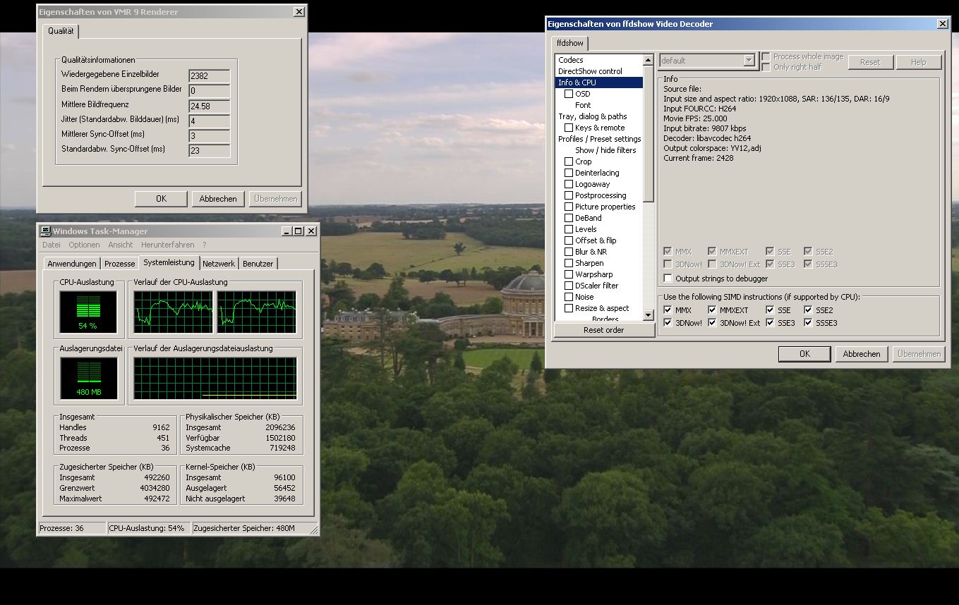 CiNcH Posted October 17, 2008 Author Posted October 17, 2008 (edited) It is getting better and better Now with ffmpeg-mt, 1080i Anixe HD with H.264 deblocking enabled: This is live with DVBViewer on Anixe HD. It somehow crashes on 720p channels like arte HD and ORF 1 HD. Recorded files from the same channels work fine. Edited October 17, 2008 by CiNcH Quote