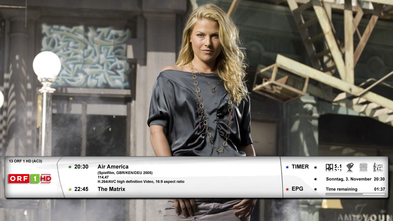Pino72 Posted October 28, 2008 Author Posted October 28, 2008 So, nachdem mich ein paar Leute angeschrieben haben...hier ein paar Impressionen, ist noch nicht endgültig aber die die Feinarbeit werde ich erst am Schluss machen....im MOment müssen noch sehr viele Grafiken umgesetzt werden etc. Grundsätzlich wird es immer ein TV Bild im Hintergrund geben, d.h. kein video Fenster in irgendeiner Ecke. Werde demnächst einen neuen Fred mit Skinname als Thema eröffnen und dort eine erste Version zum runterladen anbieten....alles weitere sollte dann dort besprochen werden. Allerdings wird das sicher noch ca. 2-3 Wochen dauern, möchte gleich ein komplettes Skin reinsetzen und nicht was halb fertiges. Werde auch mehrere Versionen des MiniEPG's anbieten da hier mit verschiedenen Textgrößen etc. gespielt werden kann je nach Gefallen und Lesbarkeit. Tja, kann leider keine Bilder mehr hochladen, die 256k sind fast voll.....!!??? Quote