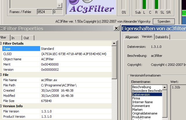 gwr Posted October 11, 2008 Posted October 11, 2008 Was allerdings bei der Versionsangabe des AC3-Filters los ist, weiß ich auch nicht. Denn ich habe Version 1.51a installiert, habe nie eine andere besessen. Das ist bei mir auch so, installiert ist die letzte stalbe Version 1.46 und das Supporttool meldet 1.3.1.0 . Bei manchen Filtern wie z.Bsp. beim Cyberlinkaudiodecoder(PDVD7) und einigen anderen steht da ....(beta). In den Filter- oder Dateieigenschaften kann ich nirgens entdecken, daß es sich um eine Betaversion handelt. Keine Ahnung wo das Supporttool manchmal seine Informationen herholt. Quote
