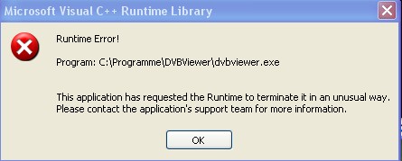 dietermo Posted October 19, 2008 Posted October 19, 2008 Hallo allerseits, ich nutze den DVBViewer Pro 3.9.2.0 unter Windows XP Home SP2 + SP3 mit sämtlichen aktuellen Updates. Meine Hardware ist TechniSat SkyStar HD, NVIDIA GeForce 7600 GT, Intel Core 2 Quad CPU 2,40 GHz, 2 GByte Arbeitsspeicher. Seit Monaten arbeitete der DVBViewer auch beim Empfangen bzw. Aufnehmen von HD-Sendern über Satellit einwandfrei. Plötzlich lassen sich die HD Sender nicht mehr starten (Nicht-HD-Sender kann ich weiterhin empfangen bzw. aufnehmen). Bei Anixe HD ist das Bild stark verzerrt, bei ASTRA HD+ und arte HD kommt eine Fehlerausschrift: Runtime Fehler (siehe Anhang). Wer hat eine Idee zum plötzlichen fehlerhaften Verhalten des DVBViewers? MfG dietermo support.zip Quote