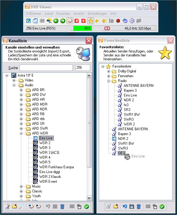Guest Posted November 2, 2008 Posted November 2, 2008 Hallo, es geht nicht darum, dass ich einen Sender einmal ablege und bei diesem unterschiedliche Tonspuren wählen kann. Im Gegensatz zu früheren Versionen kann ich bei der Version 2.6.1 einen Sender (egal ob Radio oder Fernsehen) nicht mehr in einem Kategorieordner als auch im Hauptordner ablegen, was sich für die schnelle Senderwahl (per Maus) als sehr hilfreich erwiesen hat. Kurzum, ich hätte gern die alte Funktionalität wieder, dass ein Sender MEHRFACH in der Favoritenliste vorkommen DARF. Viele Grüße Markus Quote